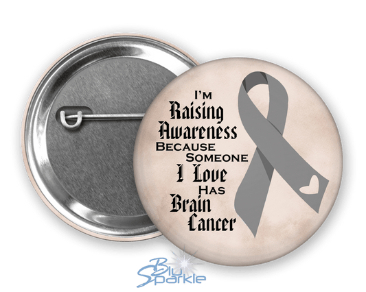 I'm Raising Awareness Because Someone I Love Died From (Has, Survived) Brain Cancer Pinback Button |x|