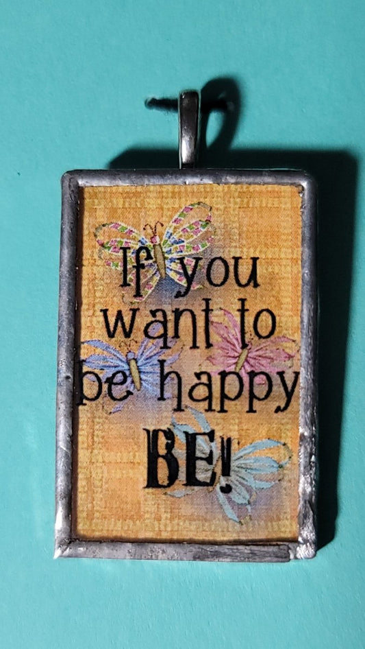 If You Want To Be Happy Handmade Stained-Glass Pendant