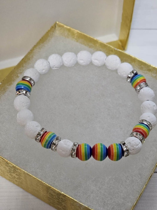 White & Crystal Rainbow LGBTQ+ Pride Diffuser Bracelet