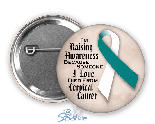 I'm Raising Awareness Because Someone I Love Died From (Has, Survived) Cervical Cancer Pinback Button |x|