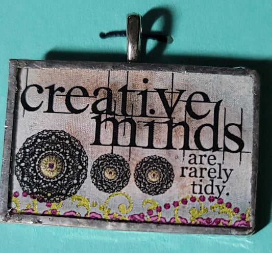 Creative Minds Are Rarely Tidy Handmade Stained-Glass Pendant
