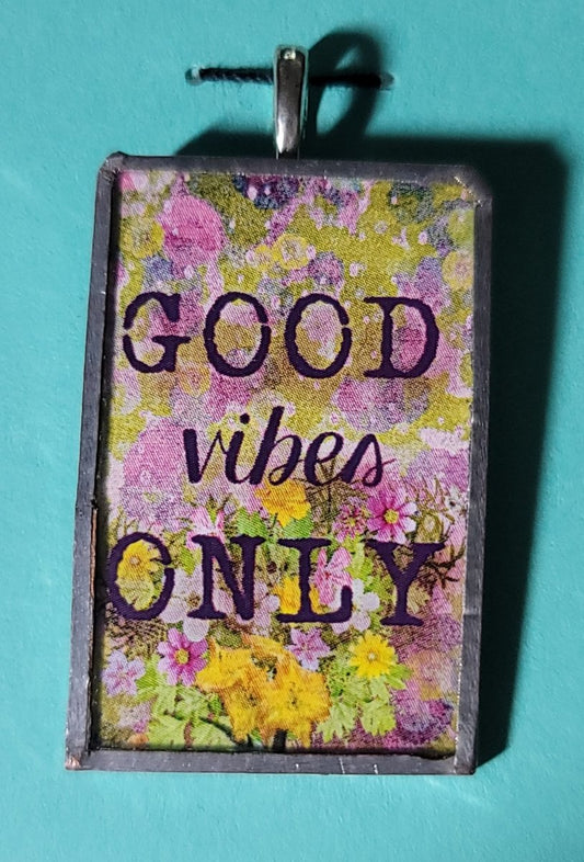 Good Vibes Only Wire Wrapped Handmade Stained-Glass Pendant
