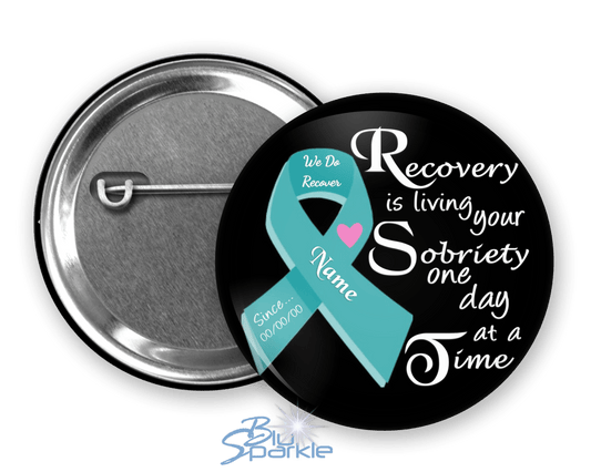 Personalized "Recovery is Living Your Sobriety One Day at a Time" Pinback Buttons