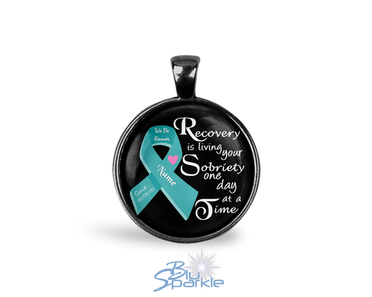 Personalized "Recovery is Living Your Sobriety One Day at a Time" Round Pendants