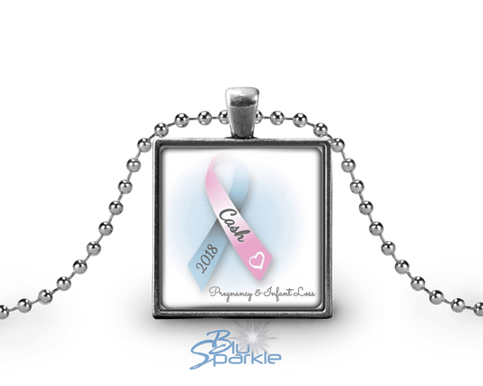 Awareness Ribbon - Personalized Square Pendants